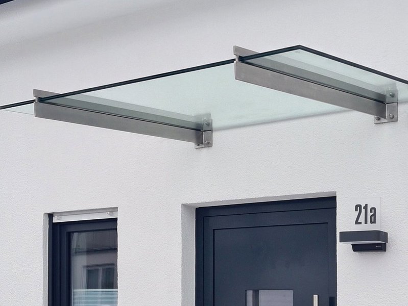 Ein Vordach aus Glas schützt den Eingangsbereich vor Regen und Schnee, sorgt für eine helle und einladende Atmosphäre durch Lichtdurchlässigkeit und verbessert die Ästhetik des Gebäudes.