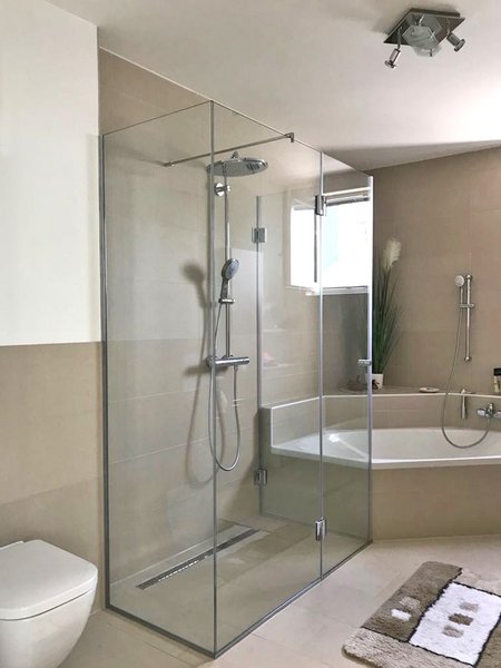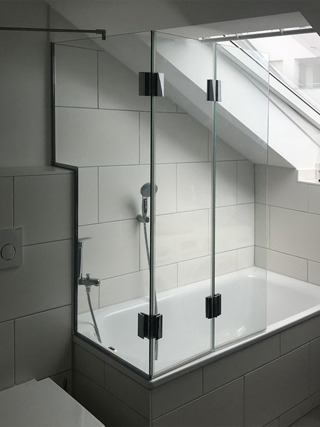 Eine von uns gefertigte Glasdusche oder Duschtrennwand für Ihr Badezimmer in München und Umgebung ist immer maßgefertigt. Schließlich haben Bäder oft spezielle Formen, die es zu berücksichtigen gilt und nicht mit Meterware bestückt werden sollten. Auch Dachschrägen oder Ausschnitte für Mauersockel machen einen Badewannenaufsatz oder eine Duschkabine aus Glas zu einer Anfertigung, die nicht von der Stange kommen kann – für Sie etwas ganz Besonderes, für uns versiertes Alltagsgeschäft, in dem wir große Erfahrungen haben.