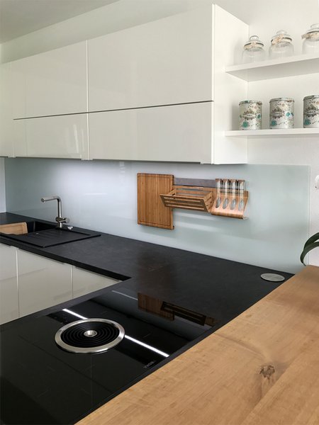 Die Befestigung der Küchenrückwand ist nicht sichtbar – diese wirkt wie aus einem Guss. Optional kann die Küchenrückwand auch magnetisch gemacht werden.