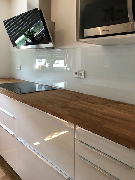 Eine Küchenrückwand aus Glas ist als Spritzschutz die moderne Alternative zur Fliese. Denn nicht nur technisch, auch optisch sind Küchen in einer neuen Zeit angekommen. Hochstehende Herdplatten und Kacheln sind längst eleganten Ceranfeldern, edlen Materialien und Trendfarben gewichen. Genauso hält auch die gläserne Küchenrückwand Einzug in Münchens Küchen. Die neue Oberfläche aus Glas setzt neue ästhetische Akzente. Sie lässt sich individuell nach Ihren Vorstellungen gestalten. Und überaus praktisch ist sie ohnehin.
