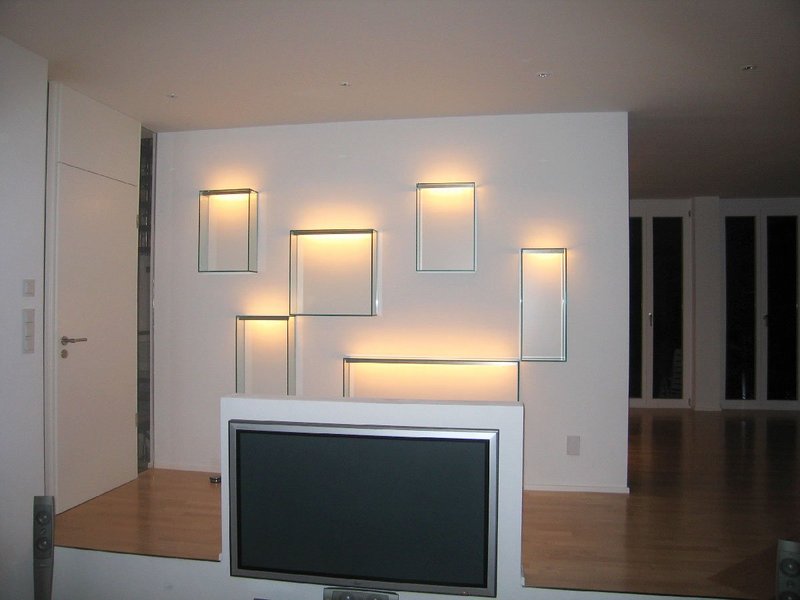 Glas ist so vielseitig einsetzbar: ein besonderes Highlight in Ihrem Wohnzimmer setzen zum Beispiel Glasregale mit LED Beleuchtung.